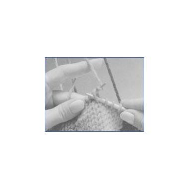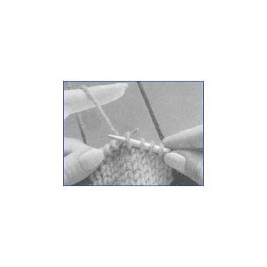 Jetzt legen Sie den Faden vor die Nadel und stricken die Masche ab (siehe Abb. 3). Beim Farbwechsel verkreuzen Sie die Fäden entgegengesetzt zur Hinreihe