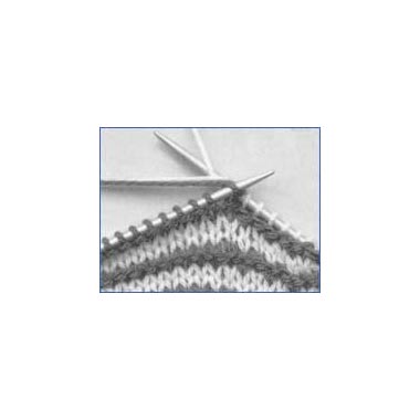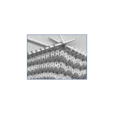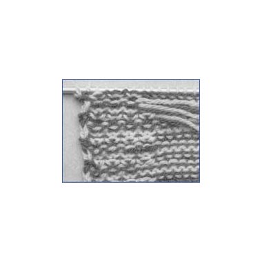 Damit können natürlich auch bei unifarbenen Strickteilen alle Fadenenden eingearbeitet werden, ebenso lassen sich bei Jacquard-Mustern auf dieselbe Weise lange Spannfäden „umstricken”. Hierbei reicht es aus, jede 3. Masche einzuweben.