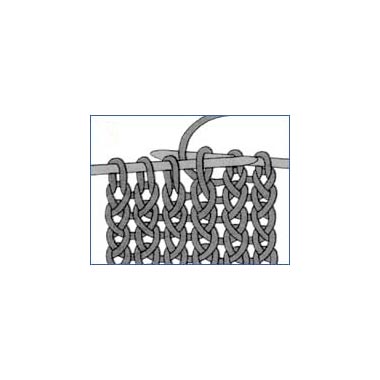 Im allgemein werden für die Randzunahmen (wie z.B. Ärmelschrägungen)einzelne Maschen zwischen Randmasche und der folgenden Masche aufgenommen: 1.) Man nimmt zwischen 2 Maschen den Querfaden auf (Abb. 1), hängt ihn auf die linke Nadel und strickt ihn verschränkt ab.